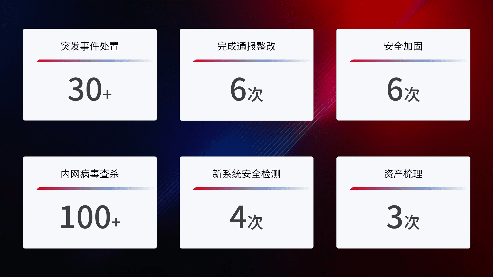 网络安全加固与风险管理:通过技术加固手段,,,,如加强区域隔离,,,缩减攻击内网横向移动的范围;优化现有网络安全管理制度,,,,降低网络威胁暴露面,,,,减少被黑客攻击的可能性。。